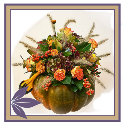 This lovely pumpkin features an exotic Flowering Peace Lilly beautifully displayed.