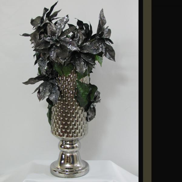 Silver Poinsettia Vase | Petals n Buds Bear Mountain Florist